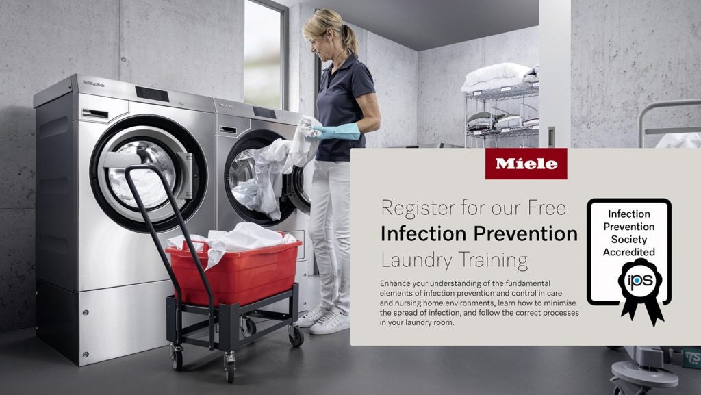 Accredited by the Infection Prevention Society, Miele Professional’s free infection control training covers all key areas, including how to prevent the spread of infection, the most common types of infections encountered in care homes, and infection control in the laundry room.
